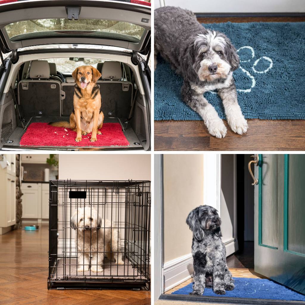 Water and mud off your dog and off your floors.