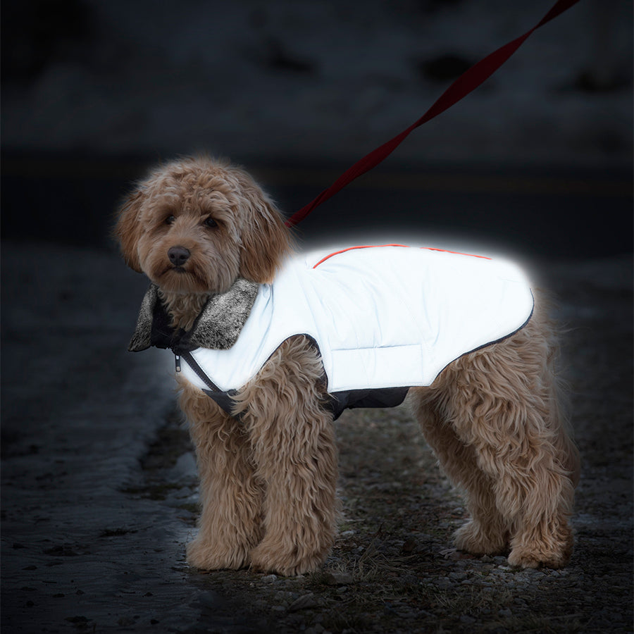 Meteor utilizes a bright technology known as retro-reflection to enhance visibility and safety in low-light conditions. This allows dogs to stand out in the dark and be easily seen by motorists, cyclists, or pedestrians reducing the risk of accidents and improving overall safety during nighttime walks or outdoor activities.