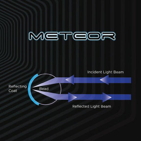 Meteor utilizes a bright technology known as retro-reflection to enhance visibility and safety in low-light conditions.