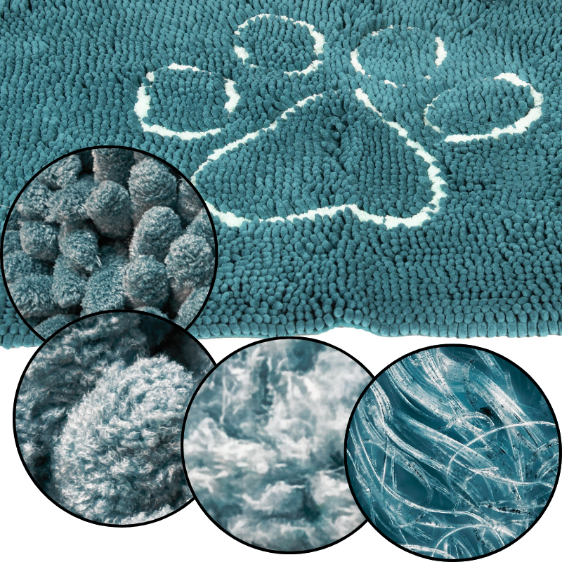 The Dirty Dog microfiber noodle design allows the fabric to increase points of contact with your dog. Our higher density per-square-inch fabric improves overall wicking power by increasing the number of points of contact. Instead of the standard 100% polyester approach, the Dirty Dog proprietary blend of fibers is composed of a polyamide core threaded with polyester fibers. Polyamide fibers are super absorbent while the polyester fibers are quick to draw in liquids. This great combination of properties allows you to keep your house, car and dog cleaner.